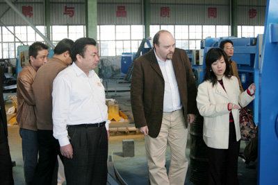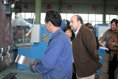 2004年10月27日上午,西班牙羅雷爾公司總經(jīng)理瓊斯·巴拉先生一行來我公司參觀考察,瓊斯·巴拉先生對我公司的剪板機、折彎機等產(chǎn)品非常感興趣并與公司領(lǐng)導(dǎo)洽談了相關(guān)合作意向!