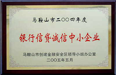 我公司獲馬鞍山市“銀行信貸誠信中小企業(yè)”