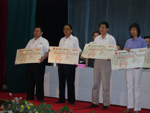 2006年7月26日下午,馬鞍山市2005年獲省著名商標(biāo)企業(yè)表彰大會(huì)在市政府東二樓會(huì)議室舉行,出席本 次會(huì)議的主要領(lǐng)導(dǎo)有省工商局副局長黃家華、市人大常委會(huì)副主任杜永田、市政府副市長劉榮華、市政協(xié) 副主席孫文植、市政府副秘書長王興無、省工商局商標(biāo)局局長劉國建等。