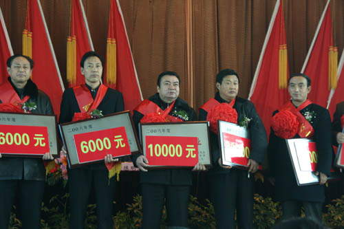 我公司獲得了“納稅大戶”(獎(jiǎng)金10000元)和“品牌與科技創(chuàng)新先進(jìn)企業(yè)”(獎(jiǎng)金2000元)兩項(xiàng)大獎(jiǎng),我司青島辦事處經(jīng)理?xiàng)钅緜€(gè)人榮獲了“十佳推銷(xiāo)員”稱(chēng)號(hào)。